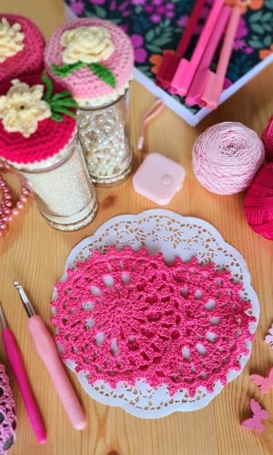 My expertise are crocheted realistic flowers and micro-miniatures…